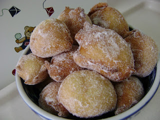 Por exemplo... matar saudades da infância e fazer bolinho de chuva... que aliás, a boneca mais velha adora... e eu, claro, fico feliz com isso... afinal, ser mãe é ser criança pela segunda vez!